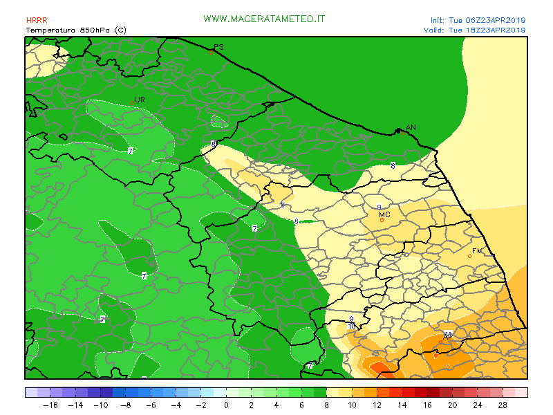 TEMPERATURA (°C) A 850HPA (circa 1500metri)